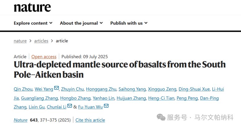 Nature封面文章2025年7月9日,中國(guó)科學(xué)院地質(zhì)與地球物理研究所、中國(guó)科學(xué)院國(guó)家天文臺(tái)與中國(guó)地質(zhì)大學(xué)等科研團(tuán)隊(duì),利用嫦娥六號(hào)采回的月球背面樣品取得的四項(xiàng)研究成果以封面文章形式發(fā)表于國(guó)際學(xué)術(shù)期刊《