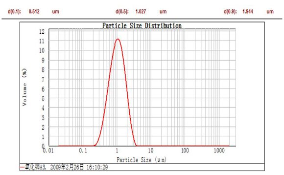 原料稀土氧化鈰通過粉碎分級獲得粒徑均勻分布的產(chǎn)品 [檢測儀器為馬爾文激光粒度分析儀MS2000](下圖)