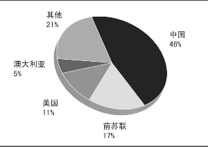 根據(jù)不完全統(tǒng)計資料顯示,全球稀土已探明工業(yè)儲量為11235萬噸(REO),中國為5200萬噸,占46%,其次分別為前蘇聯(lián)、美國、澳大利亞等國家。我國稀土資源從20世紀70年代占世界總量74%,到80年代下降到69%,至90年代下降到46%左右。這主要是由于澳大利亞、俄羅斯、加拿大、巴西、越南等國家近20年來在稀土資源的勘查與研究方面取得重大進展,先后發(fā)現(xiàn)了一大批大型、超大型稀土礦床。