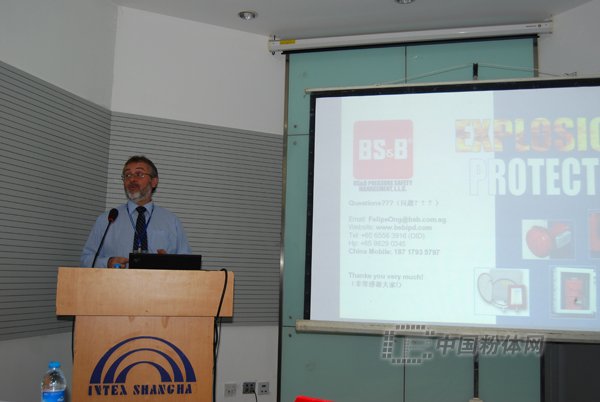 展會(huì)期間, BS&B安全系統(tǒng)有限公司的開(kāi)發(fā)部主管GEOF BRAZIER先生做了一篇題為“工業(yè)粉體爆炸的預(yù)防及保護(hù)技術(shù)”的演講,具體講解了工業(yè)粉體爆炸的預(yù)防和保護(hù)技術(shù),同時(shí)對(duì)爆破片、防爆板、IPD粉塵抑爆和隔離系統(tǒng)、火花探測(cè)和熄滅系統(tǒng)、無(wú)焰泄放等工業(yè)爆炸防護(hù)安全裝置方面做了講解。
