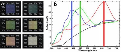 目前二氧化鈦納米管在光子學(xué)方面的應(yīng)用研究還很少。陳險(xiǎn)峰教授課題組在近年來對(duì)二氧化鈦納米管陣列結(jié)構(gòu)的制備進(jìn)行大量研究的基礎(chǔ)上,進(jìn)一步探索了這種材料在光電子學(xué)方面的應(yīng)用,獲得了縱向周期結(jié)構(gòu)二氧化鈦納米管,首次獲得了彩色的二氧化鈦納米管薄膜,這種薄膜顯示了分布于整個(gè)可見光波段的光子禁帶。在納米尺度上實(shí)現(xiàn)對(duì)光子和光電子的調(diào)控對(duì)各種功能器件的實(shí)現(xiàn)具有重要意義,研究小組提出的這種新型的納米結(jié)構(gòu)材料可以和二氧化鈦本身的特性相結(jié)合,在光電子學(xué)方面具有重要的應(yīng)用前景。