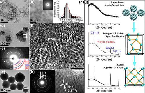 圖1:LAL獲得的亞穩(wěn)Ge納米顆粒的自發(fā)生長與相變行為表征