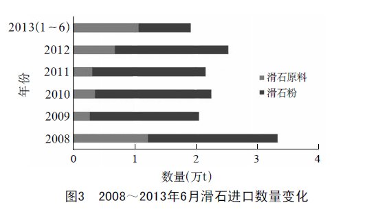 2013年中國滑石正在經(jīng)歷30年來中國滑石最嚴(yán)重衰退,上半年滑石原料數(shù)量同比下降27.79%,滑石粉下降4.94%,綠泥石26.19%。連續(xù)12年的價格上漲,特別是過去5年連續(xù)10%的增長速度已經(jīng)結(jié)束。中國滑石正在由總體供不應(yīng)求再次轉(zhuǎn)向供過于求。和2008年金融危機(jī)情況不同的是,這次不但國際市場的需求萎縮,更大的問題是國內(nèi)用量大幅縮小;I(yè)正在遭遇遠(yuǎn)比2008年更加嚴(yán)峻的市場寒冬。