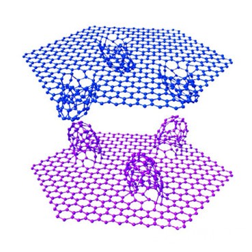 圖為柱撐石墨烯結(jié)構(gòu)示意圖,該圖表示:當(dāng)兩層石墨烯接近時(shí),石墨烯片上的突出結(jié)構(gòu)起到柱撐功能,從而防止此類石墨烯自發(fā)堆疊。