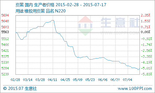 根據(jù)生意社數(shù)據(jù)監(jiān)測顯示上周炭黑價格走勢平穩(wěn),周末價格為5290元/噸,較周初價格5300元/噸持平,同比下滑16.99%。