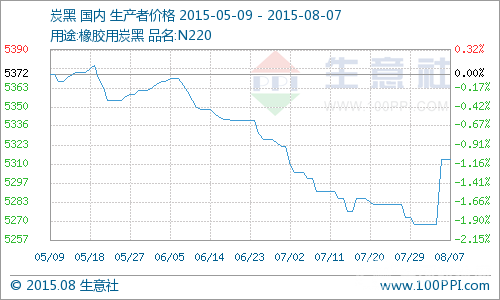 上周初炭黑N220商品指數(shù)為5270,上周末商品指數(shù)為5310,價格指數(shù)較5月18日最高點下調了1.14%。