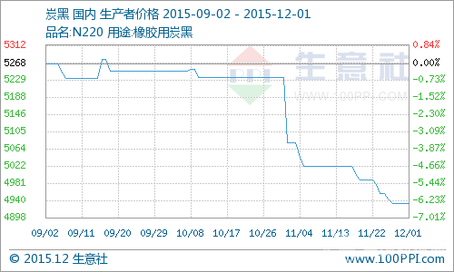 據(jù)生意社價(jià)格監(jiān)測(cè)顯示,11月初炭黑價(jià)格為5022,11月末炭黑價(jià)格為4940,跌幅為2.79%。