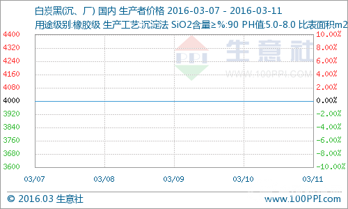 據(jù)生意社監(jiān)測,上周國內(nèi)沉淀級白炭黑價(jià)格穩(wěn)定,周均報(bào)價(jià)在4000元/噸。