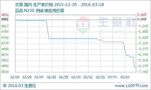 根據(jù)生意社數(shù)據(jù)監(jiān)測顯示,上周炭黑走勢下降,3月18日價(jià)格為4550元/噸,較3月14日價(jià)格4616元/噸下跌1.43%。