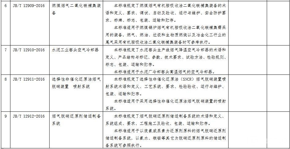 370項行業(yè)標準公示匯總表(節(jié)能環(huán)保部分)