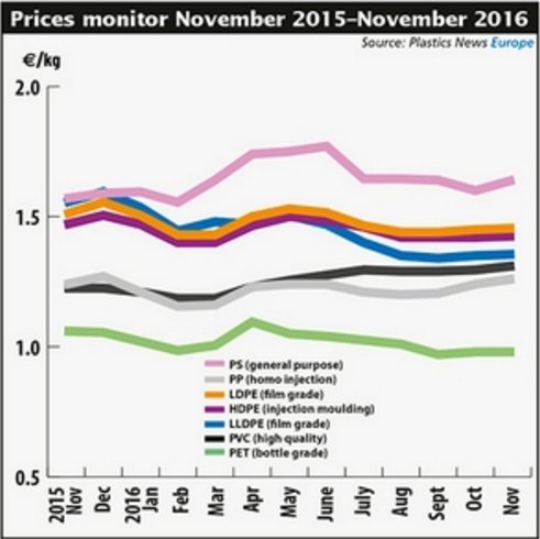 中國粉體網(wǎng)訊 11月上旬,隨著原材料成本的增加,歐洲標準熱塑性塑料價格呈現(xiàn)上漲趨勢。乙烯和丙烯的成交價增長了30歐元/噸,而苯乙烯單體的參考價格上漲了40歐元/噸。究其原因,主要是原油價格在10月份達到了最高位,另外還有歐元的貶值。