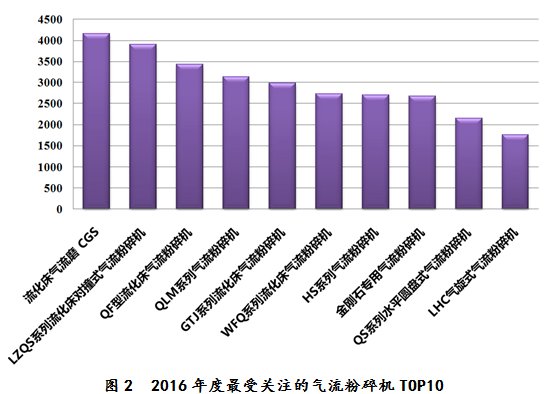隨著高端技術(shù)和納米材料產(chǎn)業(yè)的迅猛發(fā)展,傳統(tǒng)產(chǎn)業(yè)技術(shù)步伐不斷加快,各行各業(yè)對(duì)超細(xì)粉體產(chǎn)品的產(chǎn)量與質(zhì)量的需求不斷增大和提高,迫切需要與之相匹配的超細(xì)粉碎技術(shù)與設(shè)備。而氣流粉碎以其生產(chǎn)能力大、自動(dòng)化程度高、產(chǎn)品粒度細(xì)、粒度分布較窄、純度高、活性大、分散性好等特點(diǎn),得到廣泛應(yīng)用。用戶對(duì)氣流粉碎機(jī)的需求和關(guān)注的變化情況,不僅可以幫助廠商進(jìn)一步了解市場(chǎng)的需求變化,也對(duì)市場(chǎng)的發(fā)展走向有著一定的指導(dǎo)意義。以下為中國(guó)粉體網(wǎng)對(duì)2016全年氣流粉碎機(jī)專場(chǎng)用戶訪問(wèn)行為數(shù)據(jù)進(jìn)行整理分析結(jié)果,供廣大用戶和廠商參考。