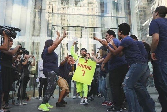 中國(guó)粉體網(wǎng)訊 下圖是國(guó)外果粉Jaime Gonzalez在紐約第五大道蘋果零售店門前扎營(yíng)排了差不多一個(gè)月的隊(duì),成為第一個(gè)入內(nèi)拿起自己預(yù)訂的iPhone 7 Plus的果粉。