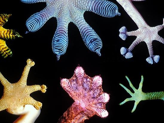 當(dāng)壁虎把它們的腳掌貼在墻壁表面時(shí),腳趾上數(shù)百萬(wàn)個(gè)剛毛(微小的頭發(fā)狀結(jié)構(gòu))的原子與墻壁原子相互作用。產(chǎn)生化學(xué)鍵使電子重新排列,在腳掌與墻壁之間產(chǎn)生被稱(chēng)為“范德華力”的電吸力。