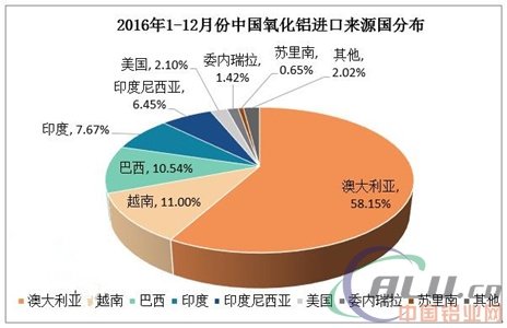 數(shù)據(jù)顯示,2016年1-12月我國(guó)氧化鋁累計(jì)進(jìn)口302.6萬(wàn)噸,同比下降34.97%,其中4-8月份我國(guó)氧化鋁累計(jì)進(jìn)口78.75萬(wàn)噸,同比下降56.99%,較去年同期減少104.33萬(wàn)噸,其產(chǎn)生的效應(yīng)相當(dāng)于一家產(chǎn)能1250萬(wàn)噸的大型氧化鋁生產(chǎn)企業(yè)停產(chǎn)5個(gè)月所產(chǎn)生的影響。從進(jìn)口企業(yè)分析,今年與去年發(fā)生很大變動(dòng)且進(jìn)口策略調(diào)整明顯。雖然前四大進(jìn)口企業(yè)同期進(jìn)口總量相當(dāng),多處于55萬(wàn)噸上下,但是2016年4-8月前十大企業(yè)進(jìn)口總量為73.1萬(wàn)噸,去年同期該值為127.03萬(wàn)噸,相差極大。隨著國(guó)內(nèi)氧化鋁價(jià)格水漲船高,海外氧化鋁價(jià)格逐市而尋,截至12月底澳洲氧化鋁FOB價(jià)格上調(diào)至346-351美元/噸,澳洲氧化鋁CIF價(jià)格上移至361-366美元/噸。卓創(chuàng)認(rèn)為內(nèi)外價(jià)格聯(lián)動(dòng)支撐海外氧化鋁價(jià)格上行。