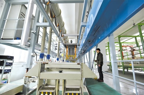 中國粉體網(wǎng)訊 日前,包頭稀土新材料產(chǎn)業(yè)基地天和磁材3000噸永磁材料項目建設(shè)現(xiàn)場,技術(shù)人員正抓緊安裝調(diào)試電鍍生產(chǎn)線,力爭5月份投產(chǎn)運行。