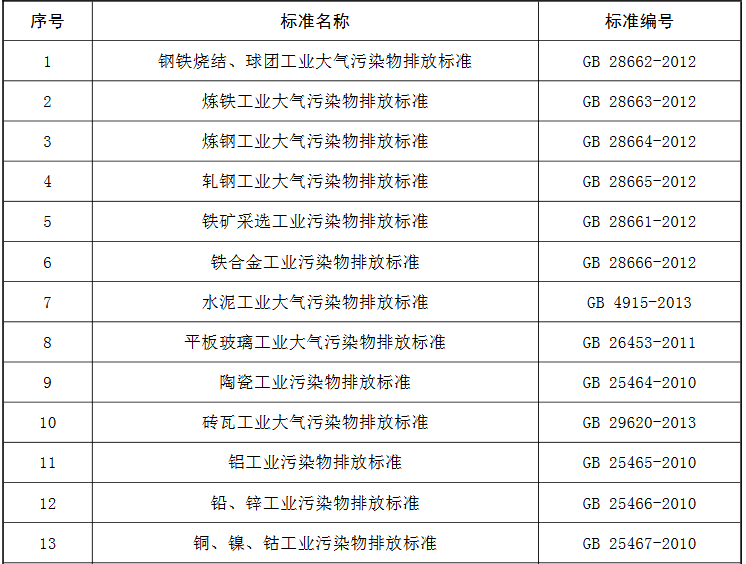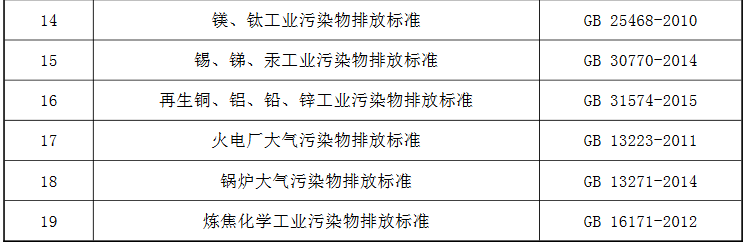 附:公告修改的行業(yè)污染物排放標準