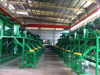 該生產(chǎn)線自主創(chuàng)新設(shè)計采用系列微粉機(jī)和大小渦輪分級機(jī)的優(yōu)化配置,解決了生產(chǎn)線上下游產(chǎn)量的銜接問題;不同規(guī)格的分級機(jī)能夠更好的匹配大小微粉磨主機(jī),粉碎球化系統(tǒng)由多套氣流渦旋微粉機(jī)和渦輪分級機(jī)組成,通過連續(xù)的粉碎、球形化篩分,提高分級精度從而提高球化成品率;研制的負(fù)壓除塵回收系統(tǒng),采用自動加料系統(tǒng)和風(fēng)網(wǎng)系統(tǒng),將生產(chǎn)線中的全部尾粉出口統(tǒng)一收集,提高生產(chǎn)線的自動化程度,防止粉塵污染。這一成果,日前在杭州通過省級新產(chǎn)品鑒定。專家認(rèn)為項目產(chǎn)品技術(shù)處國內(nèi)同類產(chǎn)品領(lǐng)先水平。