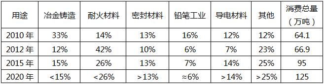 我國石墨的主要消費(fèi)結(jié)構(gòu)及消費(fèi)總量走勢