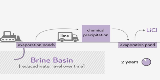 鋰是鋰離子電池的關鍵成分,主要發(fā)現(xiàn)在南美洲,中國和美國鹽堿地的鹽水中。傳統(tǒng)上,從單位提取鋰包括將鹽水轉移到大量的地上池塘; 一旦水蒸發(fā)出來,鋰就會與鹽分化學分離,這些鹽在景觀中被排出,數(shù)量足夠大,對植物和動物有毒。整個提取過程大約需要兩年時間,僅占據(jù)鋰電池的約50%,并排放已經(jīng)干燥的水景。