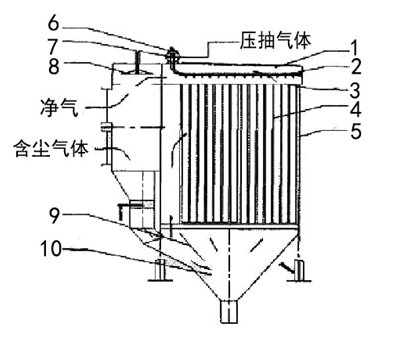 脈沖袋式除塵器結(jié)構(gòu)示意圖