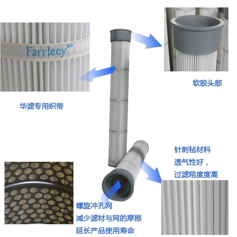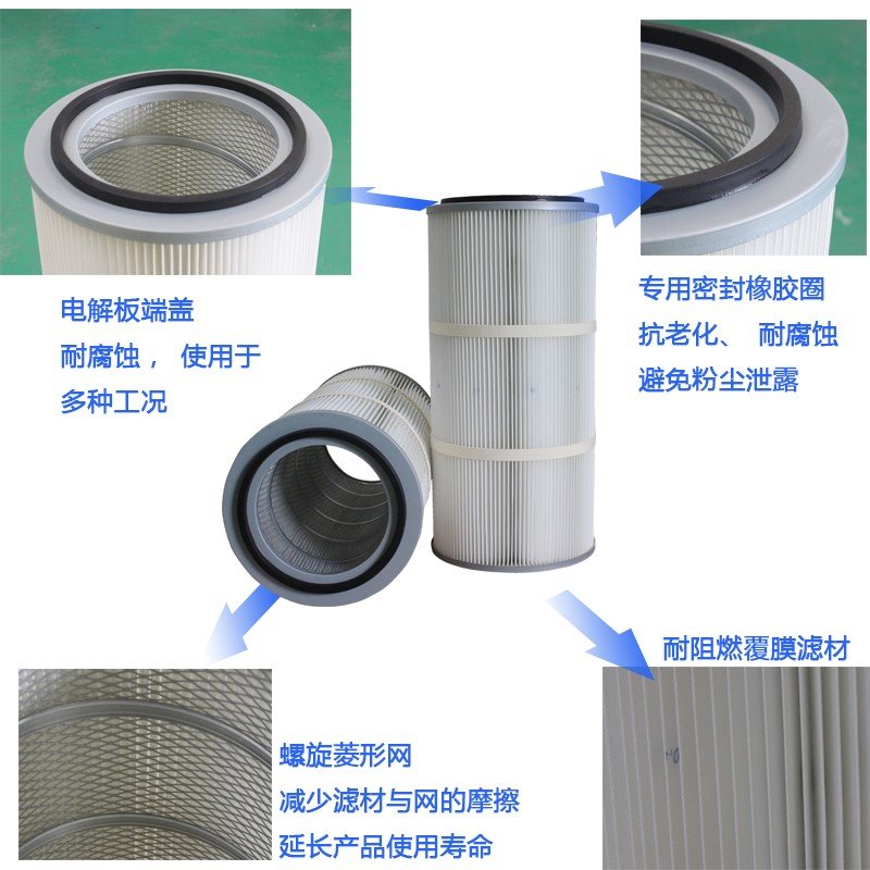選用進(jìn)口東麗阻燃聚酯纖維濾料,結(jié)合先進(jìn)的折疊工藝,使濾筒具有不燃燒過濾面積大,孔徑小、透氣量大、阻力低、效率高的特點;