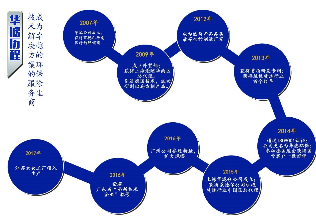 2010年華濾斥資引進(jìn)德國先進(jìn)技術(shù)及設(shè)備,成為國內(nèi)首家成功開發(fā)出全系列扁式方框濾筒的廠家,2012年華濾再次創(chuàng)新,研發(fā)出全系列折疊濾袋產(chǎn)品,這促使了除塵設(shè)備核心過濾元件的升級換代,填補了國內(nèi)市場的空白。