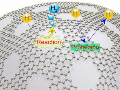 研究人員發(fā)現(xiàn)多孔石墨烯可以解決這個(gè)問(wèn)題。他們使用氮摻雜石墨烯片來(lái)封裝鎳-鉬(NiMo)電極合金,石墨烯含有大量納米級(jí)的孔。研究人員表明,在酸性條件下的HER中多孔石墨烯明顯優(yōu)于無(wú)孔石墨烯。石墨烯在HER電極中的使用并不新鮮,這種柔性導(dǎo)電碳片是包裹核心金屬的理想材料,不過(guò)石墨烯雖然能保護(hù)金屬免受腐蝕,同時(shí)也抑制了它的化學(xué)活性。在筑波大學(xué)的研究中石墨烯的孔以?xún)煞N方式促進(jìn)反應(yīng),與此同時(shí)完整的石墨烯可以保護(hù)金屬。