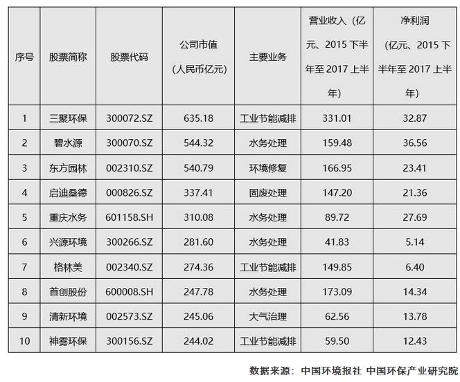 中國粉體網(wǎng)訊 隨著我國環(huán)保事業(yè)和生態(tài)文明建設(shè)的全面推進(jìn),環(huán)保產(chǎn)業(yè)迎來了快速發(fā)展的歷史機(jī)遇,涌現(xiàn)出一大批優(yōu)秀的企業(yè),而其中的環(huán)保上市企業(yè)正是這一領(lǐng)域的領(lǐng)跑者。截至2017年末,我國環(huán)保上市公司已超過百家,總市值超過1.1萬億元(人民幣),并且繼續(xù)呈現(xiàn)出良好的發(fā)展勢頭。下面讓我們來一同了解市值最高的10大國內(nèi)環(huán)保上市公司(以2017年12月31日作為基準(zhǔn)日)。