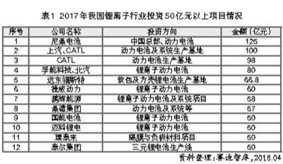 投資規(guī)模再創(chuàng)新高。據(jù)不完全統(tǒng)計(jì),2017年我國(guó)鋰離子電池產(chǎn)業(yè)投資(含擬投資)超過(guò)2000億元,實(shí)際投資近1200億元。其中,動(dòng)力電池投資額接近1300億元,繼續(xù)保持高位。除表1中相關(guān)企業(yè)擴(kuò)產(chǎn)外,國(guó)軒高科、天津力神等動(dòng)力電池骨干企業(yè),以及當(dāng)升科技(300073)、天賜材料(002709)、杉杉等配套材料骨干企業(yè)也都在積極擴(kuò)產(chǎn)。
