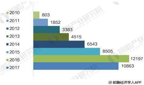 圖表2:2010-2017年中國石墨烯新增企業(yè)數(shù)量統(tǒng)計(單位:家)