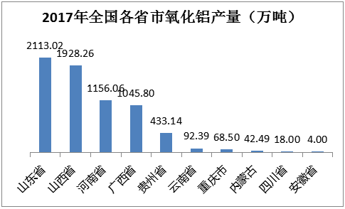過去幾年全球的氧化鋁產(chǎn)量增量主要來自中國,中國產(chǎn)量目前占比超50%。中國的氧化鋁產(chǎn)地主要分布在鋁土礦資源地山西、河南、廣西和靠近港口、交通便利的山東。2017年有10個省份生產(chǎn)氧化鋁,其中,山東省2017全年氧化鋁產(chǎn)量2113.02萬噸,累計增長14.23%,位居排行榜首位。
