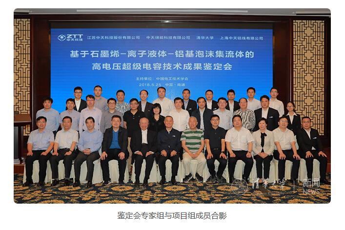 鑒定委員會聽取了完成單位清華大學(xué)和江蘇中天科技股份有限公司所作的工作及技術(shù)報(bào)告、科技查新和第三方檢測報(bào)告、技術(shù)及經(jīng)濟(jì)前景分析等,并審查了有關(guān)項(xiàng)目、專利與發(fā)表文獻(xiàn)等技術(shù)資料,經(jīng)質(zhì)詢、答辯和認(rèn)真討論,鑒定委員會認(rèn)為:該項(xiàng)目提出了基于石墨烯-離子液體-鋁基泡沫集流體高電壓超級電容技術(shù);開發(fā)的全鋁泡沫集流體技術(shù)填補(bǔ)了國內(nèi)空白,性能優(yōu)于國外產(chǎn)品;全鋁泡沫集流體解決了石墨烯極片加工的難題,為高性能的高電壓超級電容器的構(gòu)筑提供了基礎(chǔ);所得電容器件的性能遠(yuǎn)高于目前商用雙電層超級電容器件;該技術(shù)成果達(dá)到國際領(lǐng)先水平,同意通過鑒定。建議進(jìn)一步開展工程化與應(yīng)用研發(fā)。