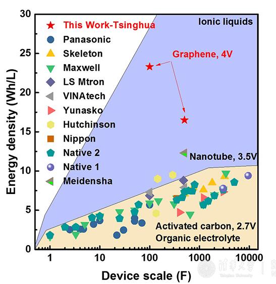 清華負(fù)責(zé)研發(fā)的石墨烯高電壓超級電容與國內(nèi)外產(chǎn)品技術(shù)指標(biāo)對比