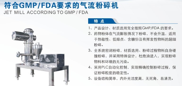 符合GMP/FDA要求的氣流粉碎機