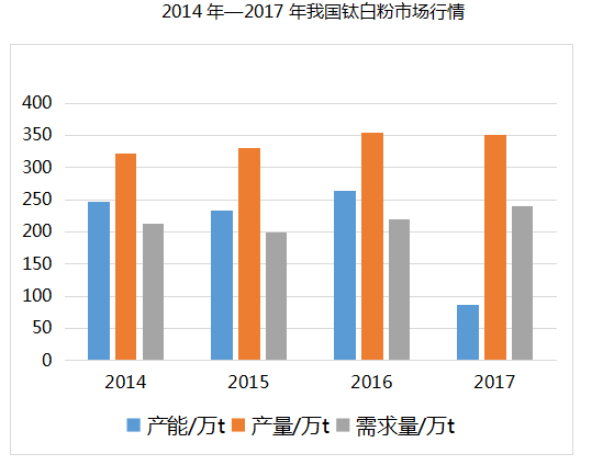 近幾年來(lái)鈦白粉行業(yè)遭遇了產(chǎn)能過(guò)剩打擊,而中國(guó)顯得尤為明顯。中國(guó)目前已經(jīng)成為世界第一大鈦白粉生產(chǎn)國(guó),但中國(guó)鈦白粉產(chǎn)能嚴(yán)重過(guò)剩,產(chǎn)品供大于求,鈦白粉原料供應(yīng)嚴(yán)重依賴進(jìn)口,產(chǎn)業(yè)發(fā)展與環(huán)境保護(hù)的矛盾日益尖銳,已經(jīng)制約了中國(guó)鈦白粉產(chǎn)業(yè)的發(fā)展。2017年國(guó)內(nèi)的環(huán)保督查也使得鈦白粉行業(yè)淘汰掉大量的落后產(chǎn)能,不排除后期持續(xù)淘汰落后產(chǎn)能。