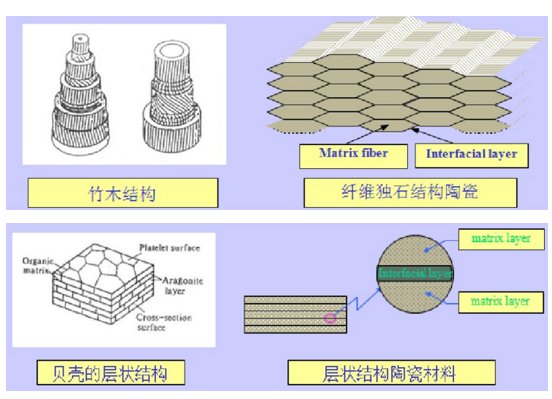中國粉體網(wǎng)訊 層狀復(fù)合陶瓷的設(shè)計(jì)思路是在脆性陶瓷中加入軟質(zhì)的耐高溫材料制成層狀復(fù)合陶瓷,雖然其組分簡(jiǎn)單,但精細(xì)的復(fù)合結(jié)構(gòu)保證了材料優(yōu)良的力學(xué)性能。層狀復(fù)合是一種仿生設(shè)計(jì),這些仿生材料的特點(diǎn)不僅可以從組分設(shè)計(jì)上改善陶瓷韌性,還可以從宏觀結(jié)構(gòu)來設(shè)計(jì)新型材料,形成不同尺度多級(jí)增韌機(jī)制協(xié)同作用,是陶瓷補(bǔ)強(qiáng)增韌的新思路。目前,常用的仿生結(jié)構(gòu)有竹木結(jié)構(gòu)、貝殼結(jié)構(gòu)等。