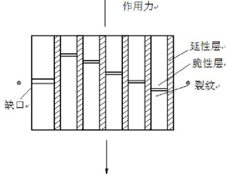 弱界面層狀復(fù)合陶瓷的裂紋擴(kuò)展示意圖