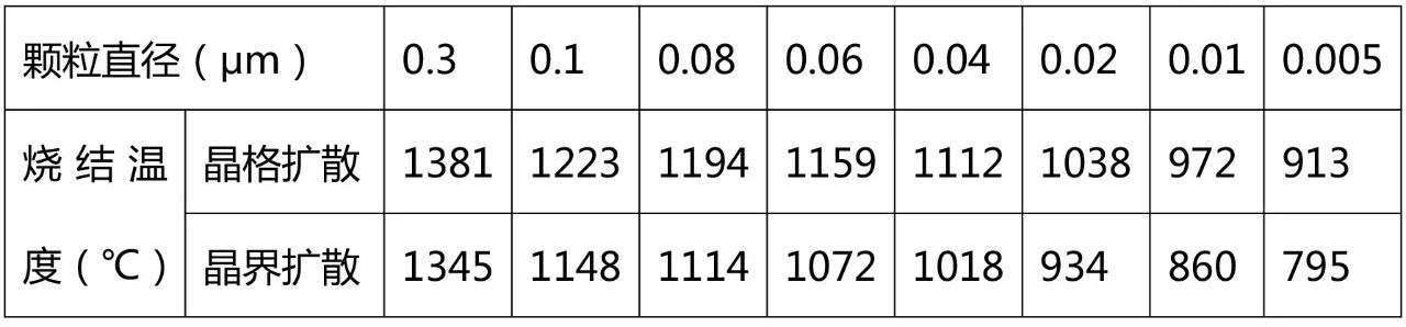 粉體顆粒尺寸與燒結(jié)溫度的關(guān)系