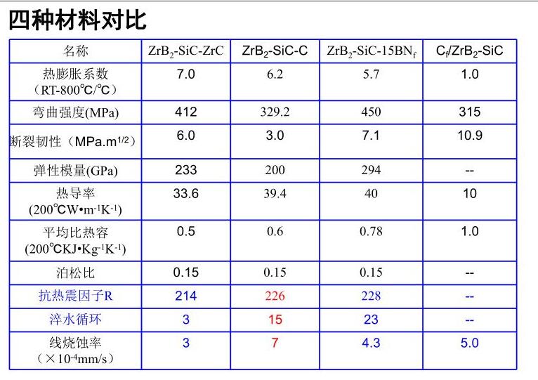 高超音速飛行器長時間在大氣層內飛行,要求防熱部件能長時間在氧化氣氛中經受2000℃以上的高溫。同時,又要求不能發(fā)生燒蝕。一般的難熔金屬材料、燒蝕材料、C/C復合材料以及陶瓷材料等均不能滿足使用要求。山東工業(yè)陶瓷設計研究院周長靈教授在報告中首先介紹了超高溫陶瓷材料在美國、意大利及中國的研究現狀,然后依次介紹了四種超高溫陶瓷材料(即ZrB2-SiC-ZrC三元陶瓷、ZrB2-SiC-C超高溫復相陶瓷、ZrB2 -SiC-BNf復相陶瓷及C f/ZrB2-SiC復合材料)的制備以及它們耐高溫、抗燒蝕、抗熱震性能的機理。