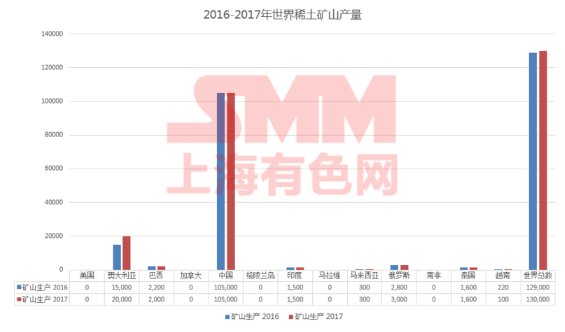 根據(jù)美國(guó)地質(zhì)調(diào)查局2018年最新稀土報(bào)告顯示,中國(guó)在2017年礦山產(chǎn)量達(dá)10.5萬(wàn)噸,占當(dāng)年全球總產(chǎn)量的80.77%。全球稀土REO儲(chǔ)量約1.2億噸,中國(guó)儲(chǔ)量為4400萬(wàn)噸,占全球總儲(chǔ)量的36.67%。除中國(guó)外,巴西、俄羅斯、越南等國(guó)的礦山產(chǎn)量分別為2200萬(wàn)噸、1800萬(wàn)噸以及2200萬(wàn)噸。