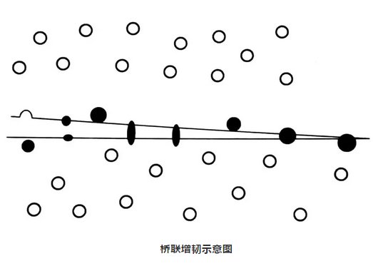 裂紋橋聯(lián)是一種裂紋尖端尾部效應(yīng),是發(fā)生在裂紋尖端后方由補(bǔ)強(qiáng)劑連接裂紋的兩個表面并提供一個使兩個裂紋面相互靠近的應(yīng)力,即閉合應(yīng)力,這樣導(dǎo)致應(yīng)力強(qiáng)度因子隨裂紋擴(kuò)展而增加。即裂紋繞過擴(kuò)展過程中遇上晶須時,裂紋有可能發(fā)生穿晶破壞,也有可能出現(xiàn)互鎖現(xiàn)象,即裂紋繞過晶須并形成摩擦橋。
