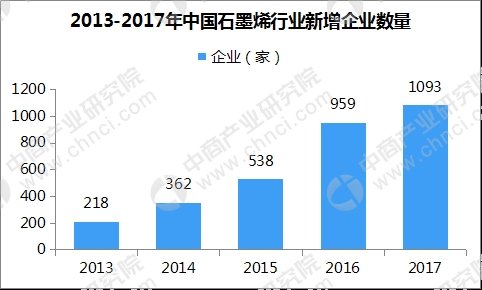 石墨烯產(chǎn)業(yè)前景廣闊,相關企業(yè)的數(shù)量逐年增多。據(jù)統(tǒng)計,截至2017年底,全國石墨烯相關的企業(yè)數(shù)量超4800家,2017年新增的企業(yè)數(shù)量達1093家。這些企業(yè)主要涉及石墨烯的研發(fā)、制備、銷售、應用等方面。