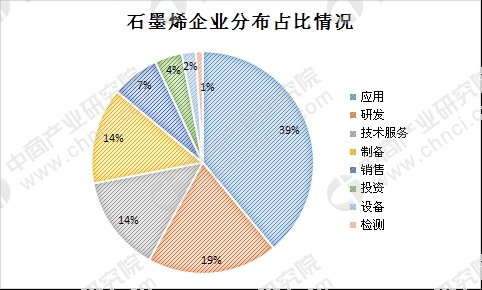 具體來看,在石墨烯產(chǎn)業(yè)中,涉及應用方面的企業(yè)最多,占比近四成。其次為研發(fā)領域,占比19%。技術服務、制備領域的企業(yè)數(shù)量各占14%。
