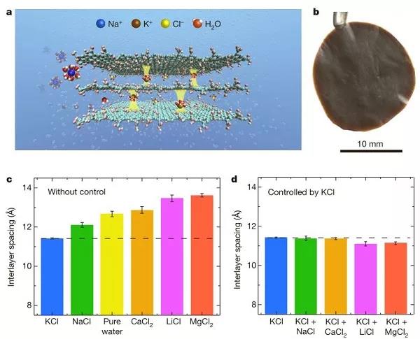 9.Nature:氧化石墨烯膜通過(guò)陽(yáng)離子控制層間距實(shí)現(xiàn)離子篩分