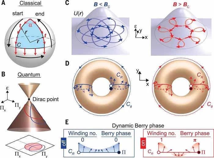 美國(guó)國(guó)家標(biāo)準(zhǔn)與技術(shù)研究所Joseph A. Stroscio教授(通訊作者)團(tuán)隊(duì)研究發(fā)現(xiàn),通過(guò)通過(guò)特殊的幾何相位可以誘導(dǎo)出一些有趣的光譜特征:在相對(duì)較小的臨界磁場(chǎng)情況下,環(huán)形石墨烯P-N結(jié)共振器的角動(dòng)量的能量會(huì)突然大幅增加。這種現(xiàn)象源于π幾何相位的變化,同時(shí)也和石墨烯中的狄拉克費(fèi)米子的拓?fù)湫再|(zhì)有關(guān)。幾何相位可以在很小的磁場(chǎng)調(diào)控變化下控制和切換開(kāi)關(guān)狀態(tài),這也為未來(lái)石墨烯光電器件的應(yīng)用奠定了一定的基礎(chǔ)。