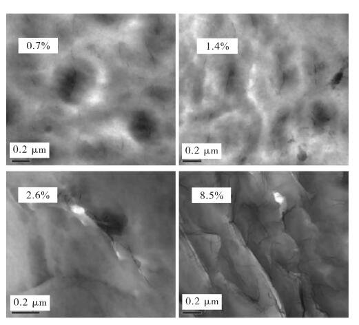 不同石墨烯含量聚丙烯復(fù)合材料的透射電鏡(TEM)照片