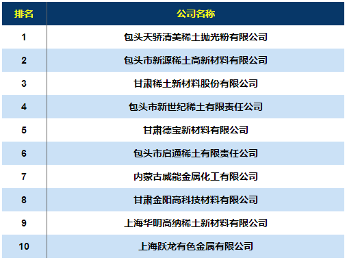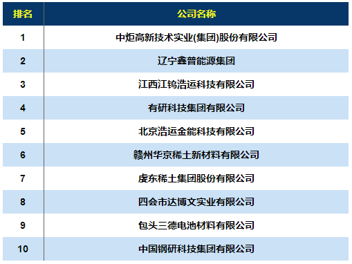 2018稀土儲氫材料企業(yè)排行榜