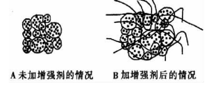 在陶瓷生產(chǎn)過(guò)程中,對(duì)于一些質(zhì)地較差的高嶺土等,往往需要加入某些陶瓷添加劑來(lái)彌補(bǔ)其塑性差或改善初制品的強(qiáng)度。陶瓷增強(qiáng)劑的作用原理是其可在陶瓷顆粒之間架橋,產(chǎn)生交聯(lián)作用,形成不規(guī)則的網(wǎng)狀結(jié)構(gòu);同時(shí)顆粒表面被包裹還會(huì)使顆粒之間產(chǎn)生氫鍵而大大增強(qiáng)制 品的強(qiáng)度。