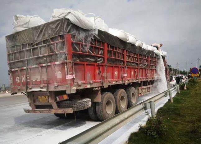 “年初五下午兩點(diǎn)半,(廣西)欽州西收費(fèi)站出口,一臺(tái)大貨車出收費(fèi)站的時(shí)候車頂掛到收費(fèi)站欄桿,一時(shí)間撒得滿地的氧化鋁,不知道這種粉對(duì)人體皮膚有沒有傷害,昨天大堵車到處是人,要是有毒就后果不堪設(shè)想了。”